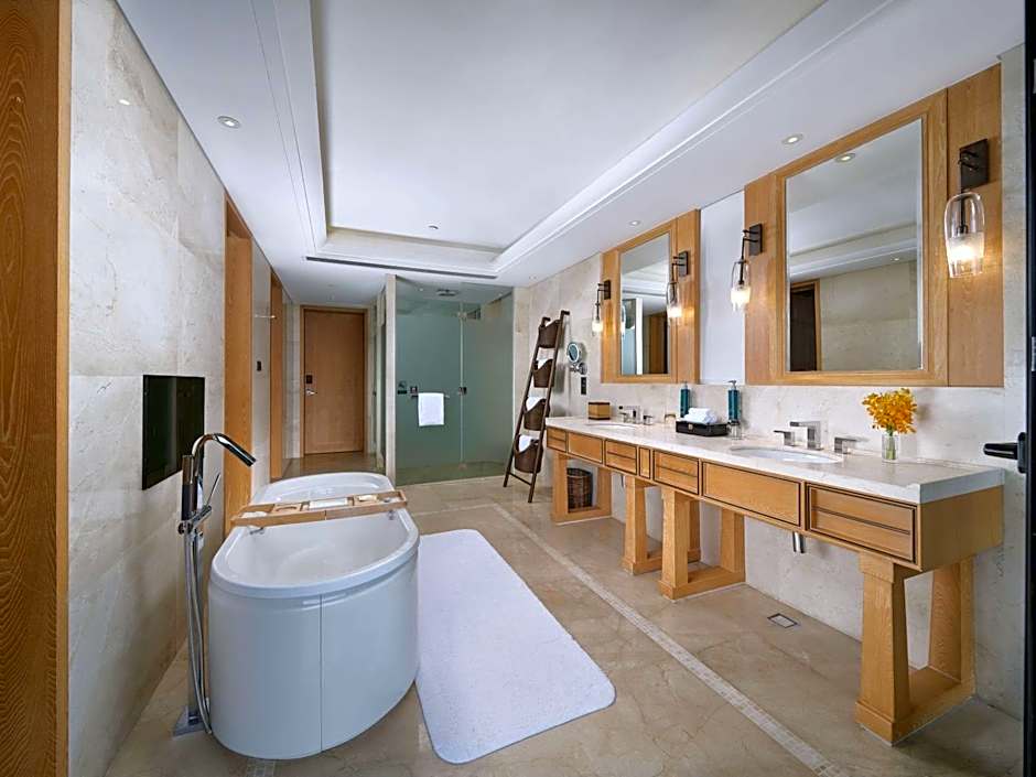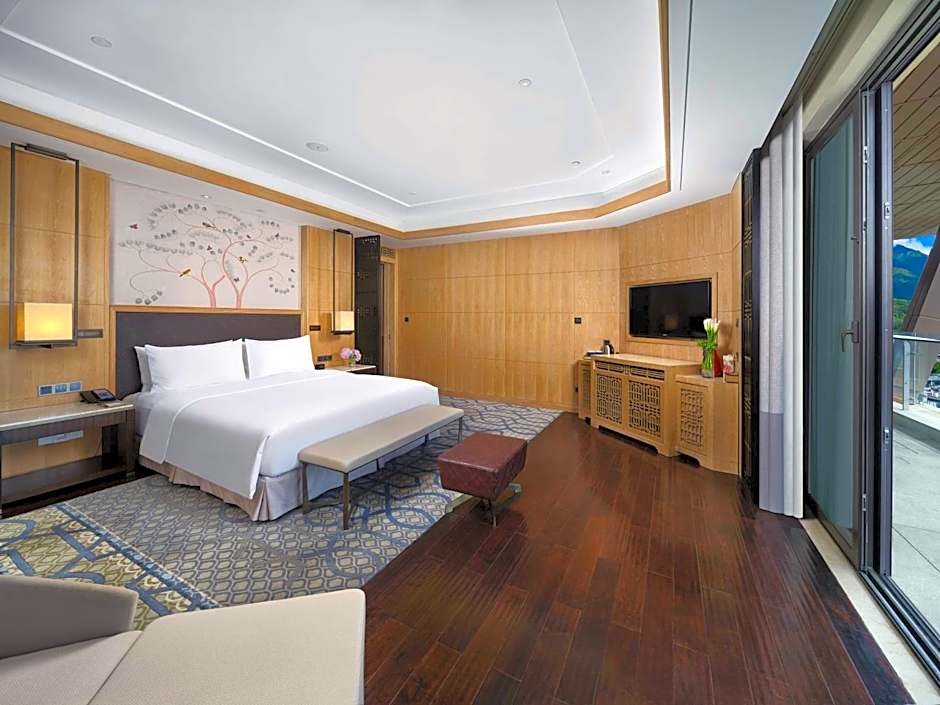 Featuring a size of 208 square yards, this spacious suite includes a separated study room, walk-in wardrobe, kitchenette and a living room with sofa and dining area. Stunning views of Erhai Lake and Cang Mountain can be enjoyed from the balcony. Indulge yourself and take advantage of the many privileges offered in the Executive Lounge with complimentary continental breakfast, evening drinks and hors d'oeuvres at cocktail hour.